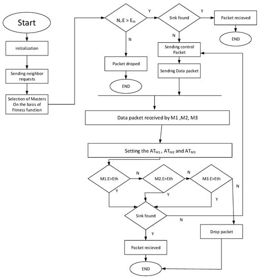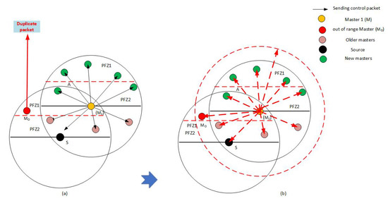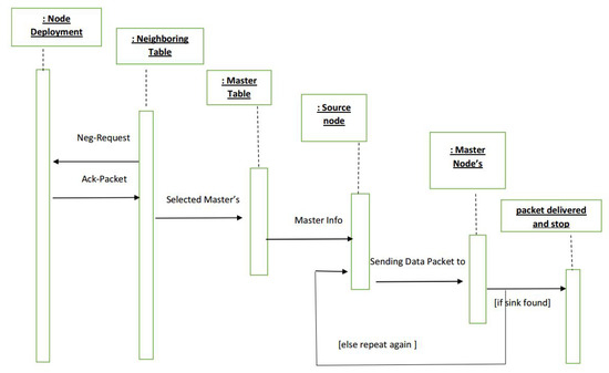 - Our proposed master–slave architecture helps to achieve lower energy consumption by limiting the broadcasting of packets to a specific region (set of nodes).