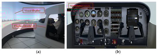 Flight simulation experiment equipment. (a) Cessna 172 flight simulator. (b) Simulator panels of Cessna 172 flight simulator. (c) The wireless wearable ECG data acquisition and recording device.
