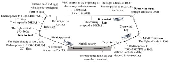 Schematic diagram of the pilot completing the airfield traffic pattern.