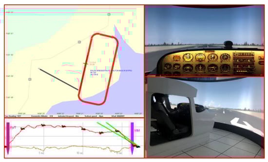 The visual manual airfield traffic pattern mission operation includes the basic flight operations during flight, such as rolling, take-off, climbing, turning, descent, landing, etc. Here, the visual manual airfield traffic pattern mission is used as the experimental content. The process of the visual manual airfield traffic pattern is displayed in Figure 6. The pilots continuously performed the flight mission during the experimental period. During the entire simulation flight process, the clear and windless Eglin Air Force Base (AFB) was selected. The simulated airfield traffic pattern process completed by the pilots at the Eglin Air Force Base is indicated in Figure 7.