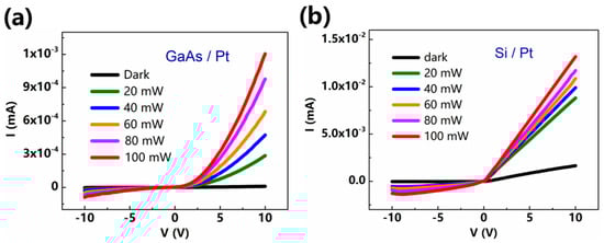 - Ghimire, S.; Dho, J. Current–voltage characteristics and photovoltaic effect of a Au/ZnFe2O4/GaN Schottky junction. J. Phys. D Appl. Phys. 2021, 54, 095103. [Google Scholar] [CrossRef]