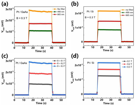 Wang, X.; Sun, X.; Cui, S.; Yang, Q.; Zhai, T.; Zhao, J.; Deng, J.; Ruotolo, A. Physical Investigations on Bias-Free, Photo-Induced Hall Sensors Based on Pt/GaAs and Pt/Si Schottky Junctions. Sensors 2021, 21, 3009. https://doi.org/10.3390/s21093009