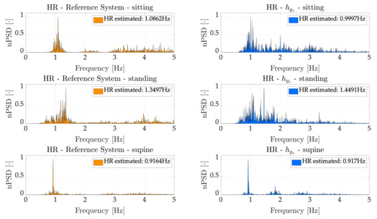 To that end, we considered only , being the most reliable according to Section 6.2.2, and we computed its spectrum by using the the MATLAB® "pwelch" function with a Hamming window of 30 s with an overlap between segments of 50%.