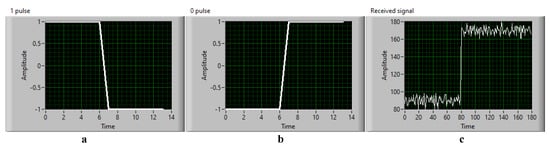 Manchester code patterns and the received signal from two adjacent LEDs (a) 1 impulse, (b) 0 impulse, (c) the received signal.