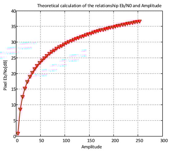 The theoretical relationship between Pixel Eb/No and image amplitude.