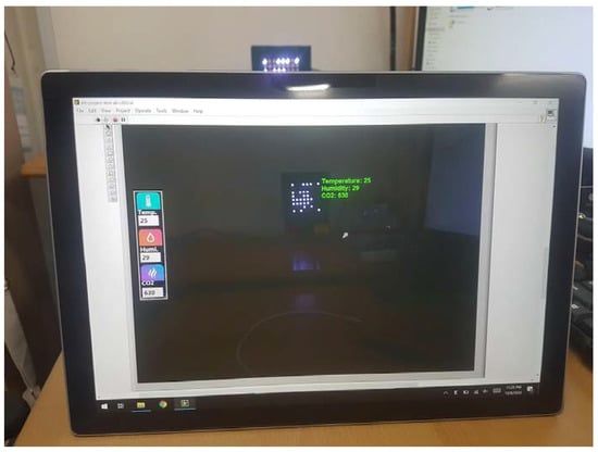 In this paper, we deployed the proposed scheme several times with various cameras (a webcam, CCTV camera, tablet, Point Gray rolling shutter camera, etc.) to analyze the effect of camera frame variation. The asynchronous process includes asynchronous decoding, the merging data technique, and the detection of missing parts. The length of the SN is considered carefully based on the integrated operation. Figure 14 presents the quantized intensity profiles of captured images with different communication distances and degree perspective viewing angles. Figure 15 displays the setup of the proposed implementation, and Figure 16 shows the experimental results obtained by a tablet rear camera. The implementation results are presented in Table 1.