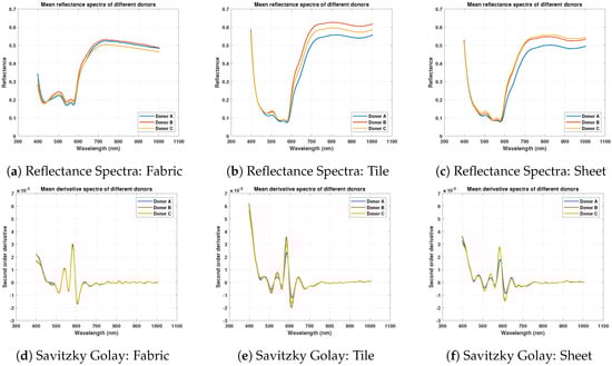 46]. In this study, Savitzky Golay’s second order derivative with a 13-point window and third-order polynomial was used to remove spectral shifts due to aging, irrelevant noise, different donor samples, and pixel variations. The derivative of aged samples also highlighted the subtle dips to make the blood spectrum homogeneous.