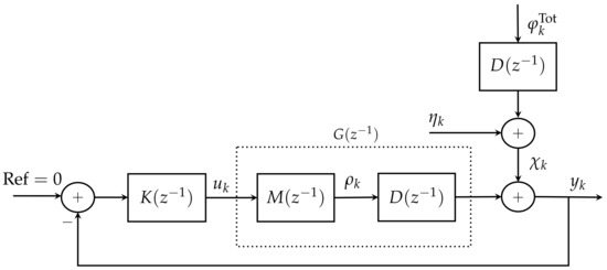 On the other hand, we consider that all of the elements in Figure 1 are linear. Subsequently, is a linear function of the past values of . The output of the system presented in Figure 1 is given by