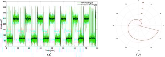 Heading estimation in agricultural vehicles: (a) comparison between a GPS receiver and an electronic compass; and (b) calibration map for electronic compasses.