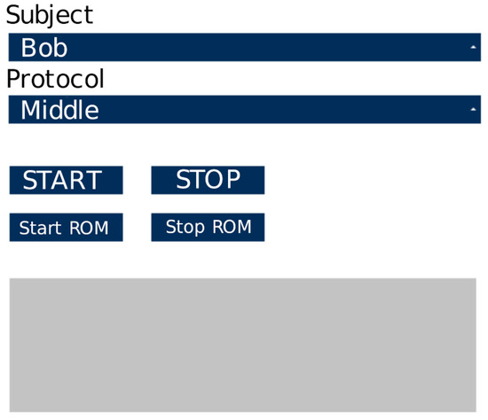 - Start/Stop ROM: these buttons allow the operator to start or stop the ROM recording. This mode requires the subject to make the movements (the widest he/she can perform) under the operator’s guidance. At the end of the operation (controlled by the Stop ROM button), the software stores the subject’s current range of movements in the data folder.