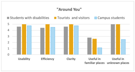 Reflecting on the lessons learned during the design and implementation of our case study, we can confirm that following an inclusive design approach was strategic in achieving positive results, in terms of usability, efficiency, and clarity of the system, for all the users involved, confirming previous findings [56]. In fact, we defined the requirements considering different target groups (users with disability, tourists and visitors, and students), with specific needs and preferences, and we design a system able to satisfy the different needs, keeping accessibility in mind and taking advantage of the curb-cut effect [6]. Moreover, having the possibility to put into practice the “design for user empowerment” approach, having a blind user in the development team, prevent our system to include issues related to the accessibility and usability of the system, especially for low vision and blind people [67].