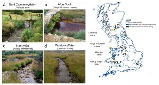 - Mayes, W.M.; Potter, H.A.B.; Jarvis, A.P. Riverine Flux of Metals from Historically Mined Orefields in England and Wales. Water Air Soil Pollut. 2013, 224, 1425. [Google Scholar] [CrossRef]