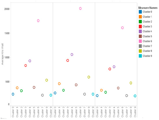 The monthly consumption of electricity of ten different clusters over three months (December–February) of summer is as follows (Figure 7).