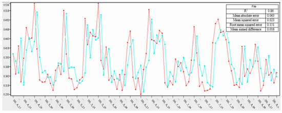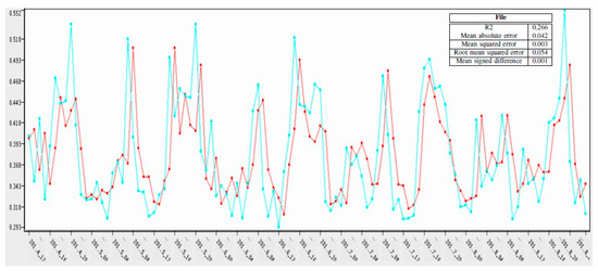In Figure 10, the prediction of the 120 h on actual values was calculated through a neural network. The blue color represents the actual value, while the red color represents the predicted values. The y-axis represents the usage while the x-axis shows the time in hours. The prediction is for 120 h.