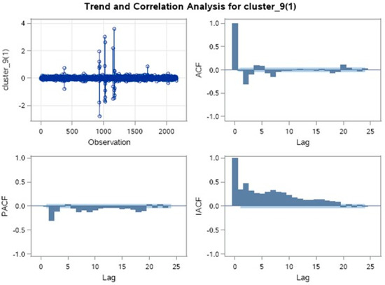 The ARIMA model is a unique type of regression model with dependent and independent variables. The dependent variables are fixed, and free variables are all slacks of the reliant variables or slacks of the blunders, as shown in Figure 13.