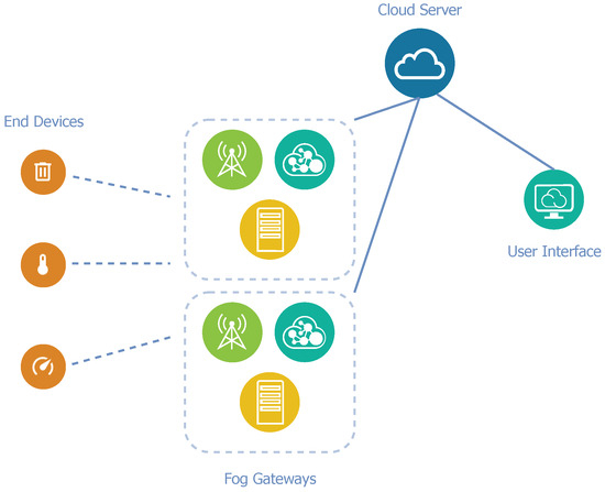 ARM, Cisco, Dell, Intel, Microsoft, and Princeton University funded OpenFog Consortium in 2015 to define an open fog computing architecture. According to the definition that is presented in the document OpenFog Reference Architecture [10], fog computing is an extension of the regular cloud-based computing paradigm, where all the advantages of the cloud should be preserved. An overview of fog computing can be found in [11,12,13]. As mentioned in [14], time-sensitive processing can be handled at the edge of a network, while other traffic can be processed in a cloud. A variety of research opportunities in the field of fog computing are in [15]. In [16,17], the authors analyzed and described the security and privacy issues of fog computing in IoT.