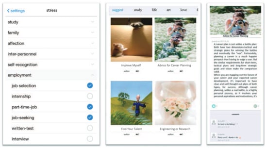 With the rapid development of economy and society, teens are facing various psychological stress coming from study, family, love, peer relation, self-cognition and so on. Bibliotherapy has been proved to be an effective treatment method to deal with psychological stress [1,2,3]. It involves the reading of specific literature with the purpose of prevention, healing and rehabilitation. Through the feelings of resonance, intimation and/or apperception, readers could develop strength and courage to cope with their stress or mental problems [1,4]. As an adjunct therapy to psychological treatment, bibliotherapy is effective to people of all ages. However, the traditional bibliotherapy based on paper materials is ill-fitted in the present information era, especially for teens. On the one hand, bibliotherapy requires a lot of professional care, which is labor demanding and difficult to be carried out by teens themselves. On the other hand, teens who are deeply pressurized tend not to actively take the treatment for reasons of self-esteem. To address the limitations, the notion of e-bibliotherapy, which combines bibliotherapy with computers and internet, thus arose [5]. As a preliminary practice on E-bibliotherapy, Xin et al. have built an adolescent reading recommender system TeenRead which weekly recommends 4 articles to users based on the similarity between users’ stress categories and articles’ categories, as shown in Figure 1 [6]. The articles of TeenRead are from the psychology practitioners and some authorized users, who are willing to share literature as a means of mutual help and personal development, and the purpose of those articles is to address certain types of psychological stress of teens. Figure 1 gives a typical example of the article, which is shown in Table 1 in its entirety.