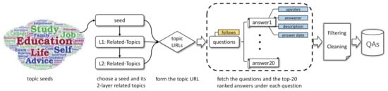 The question–answer (QA) pairs of TeenQA are crawled from Quora (www.quora.com accessed on 10 October 2020). Quora is a popular question-and-answers website created in 2009, where questions are asked, followed and answered by community users. We choose Quora as a data source for the following 2 reasons:
