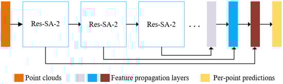 - Two point-based skip connection modules are devised in the network, Res-SA and Res-SA-2, which can fuse multi-level features to raise accuracy and efficiency in point-cloud processing;