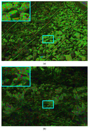 Figure 9 shows the pseudo-coloured image comparison between AEQE-CNN and HEVC [] + DBF&SAO for two LF images in the test set, Chain_link_fence_2 and Flowers. The green, blue, and red pixels mark the positions where AEQE-CNN provided an improved, similar, and worse performance, respectively, compared with HEVC [] + DBF&SAO anchor. Green is the dominant color, which shows that AEQE-CNN enhanced the quality of almost all pixels in the LF image.