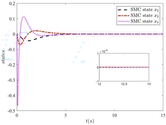 Thus is negative definite, which implies that the states reach the sliding manifold in finite-time and stabilize to the origin independent of the uncertain function , and hence ensuring the robustness property of the SMC.