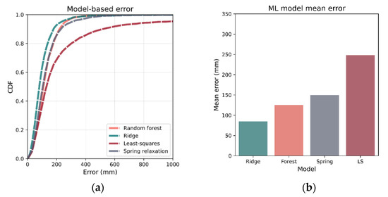 - The data set is used to provide example evaluations of common machine learning-based positioning. We demonstrate that a large data set is necessary not only for training models, but also for robust performance comparisons. For large data sets, it is found that ridge regression outperforms other machine learning techniques in terms of localization accuracy. The Lambertian RSS-distance channel model is calibrated for ranging that enables localization using linear-least-squares- and iterative-spring-relaxation-based lateration. Such model-based positioning is shown to be well suited for a small data set, with the ML-based positioning being superior when a large data set is available.