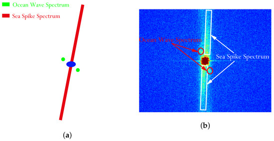 Distribution of sea surface components in the spectral domain of SAR image. (a) Schematic diagram of sea surface spectrum. (b) SAR image spectrum of sea surface.