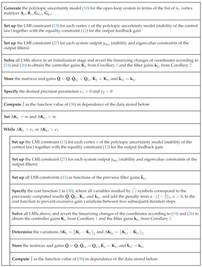 Figure 4 provides a structure diagram of the complete iteration process for the parameterization of the filter-based control law of Case 3. There, the precision parameters