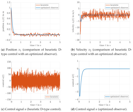 was used for the controller parameterization; however, an LMI-based observer tuning was performed on the basis of a nominal system model. The corresponding results are well comparable with the more simple filter-based output feedback from this paper with respect to noise suppression and transient behavior of the controlled system. Obviously, however, the use of a full-scale state observer leads to a suppression of undershooting the desired target position
