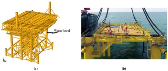 (a) Schematic diagram of JZ25-1S jacket; (b) real platform.