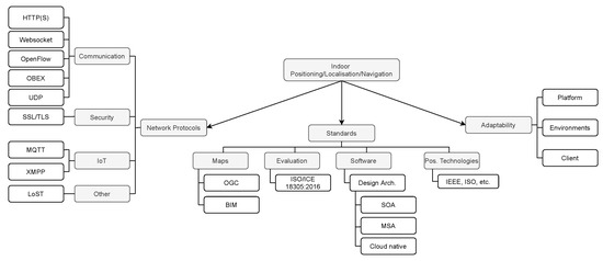 - How is the standardization aspect dealt with on different platforms?Standardization is key to providing a more reliable and high-quality indoor positioning platform. Thus, this research question aims to identify if the current systems consider the existing standards for IPS in different dimensions.