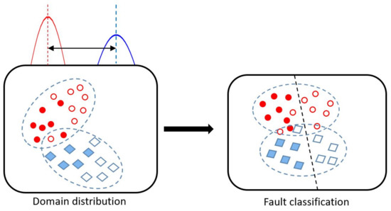 Intelligent fault diagnosis (IFD) has presently been upheaved into an integral area of interest for most life sectors, including finance, military, healthcare, cybersecurity, and the fashion industry [1]. Primarily, fault diagnosis entails the use of complex algorithms and models to detect anomalies or abnormalities in data. For instance, in Figure 1, a typical illustration of a normal and abnormal time-series distribution sample is displayed, and it is the task of an effective anomaly detector to identify the differences [2]. In most cases, anomaly detection is framed as a data-driven approach where the fault diagnosis model applies various analytical principles to analyze and extract intricate data features for observatory purposes. As such, data points are classified with a certain degree of deviation as anomalies.