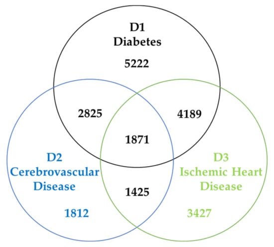 Population distribution of diabetes, cerebrovascular disease, and ischemic heart disease.