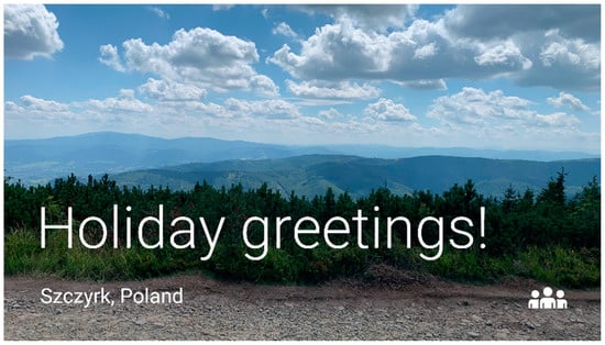 Figure 11 presents a story fragment, consisting of a picture, caption, icon, and geolocation; the application is prepared for Polish users, so the interface and text elements are all in Polish. The video presenting the use of Aphastory is also available for interested readers (https://bit.ly/3HgmHdj, accessed on 16 December 2021).