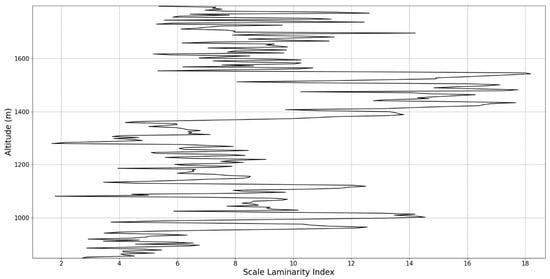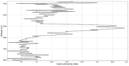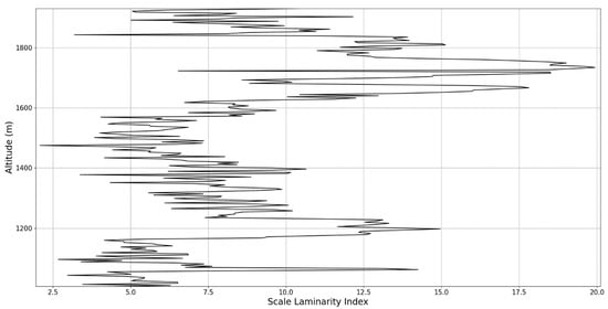 Scale laminarity index profile plot corresponding to point C in the vicinity of the PBLH.