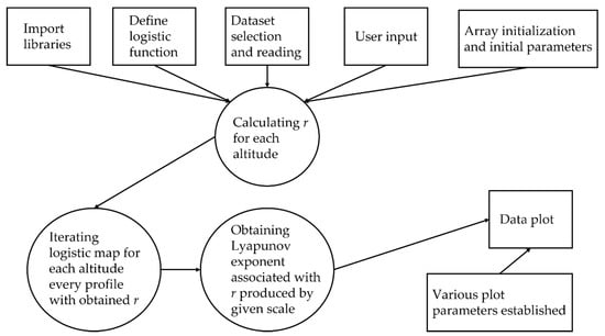 Considering the connection between the logistic map and atmospheric turbulence scale models, the approach is quite novel. However, even regarding the connection between the logistic map and atmospheric turbulence studies, not much has been written; Frisch has discovered that a mathematical expression similar to the logistic map might be considered “a poor man’s Navier-Stokes equation” [15]. A few other studies have also explored the connection between the logistic map and equations that describe two-dimensional turbulence [14,17].
