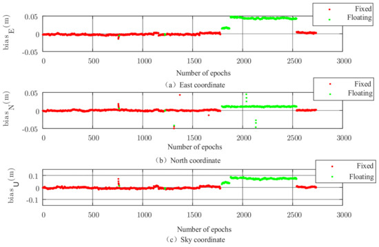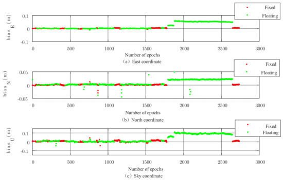 where represents the selected ambiguity subset that is easier to fix, and represents the remaining ambiguity subset. When the subset is fixed by the LAMBDA method, the integer solution of can be utilized to modify and its variance-covariance matrix to obtain the integer solution of and its fixed variance-covariance matrix: