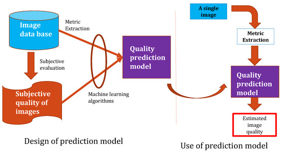 Digital images are increasingly used in several vision application domains of everyday life, such as medical imaging [1,2], object recognition in images [3], autonomous vehicles [4], Internet of Things () [5], computer-aided diagnosis [6], and mapping [7]. In all these applications, the produced images are subject to a wide variety of distortions during acquisition, compression, transmission, storage, and displaying. These distortions lead to a degradation of visual quality [8]. The increasing demand for images in a wide variety of applications involves perpetual improvement of the quality of the used images. As each domain has different thresholds in terms of visual perception needed and fault tolerance, so, equally, does the importance of visual perception quality assessment.