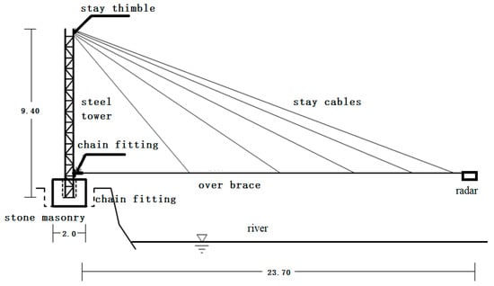 Site drawing of installed equipment. (a) Radar equipment from bank view; (b) radar equipment from river view.