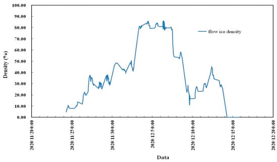 - The maximum flow ice density occurred on 6 December, which was 85.82%, and then the flow ice density gradually decreased. On 6 December, the river section was frozen and blocked as a whole.