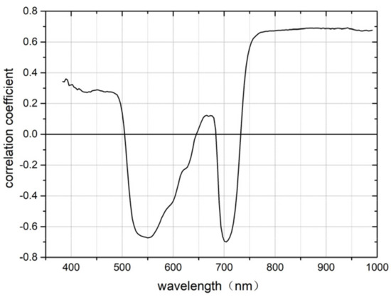 where represents the correlation coefficient, is the reflectance of the th band, is the SPAD value of the th leaf sample, is the average reflectance, and is the average SPAD value of the pepper leaves.