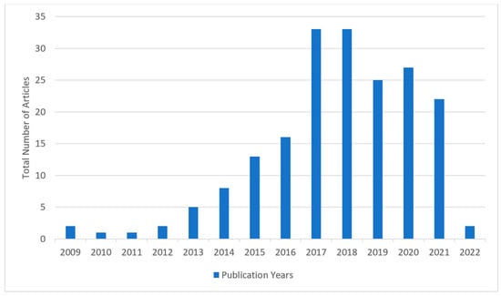 The 181 articles studied in this research from 2009 to 2020 are depicted in Figure 3.