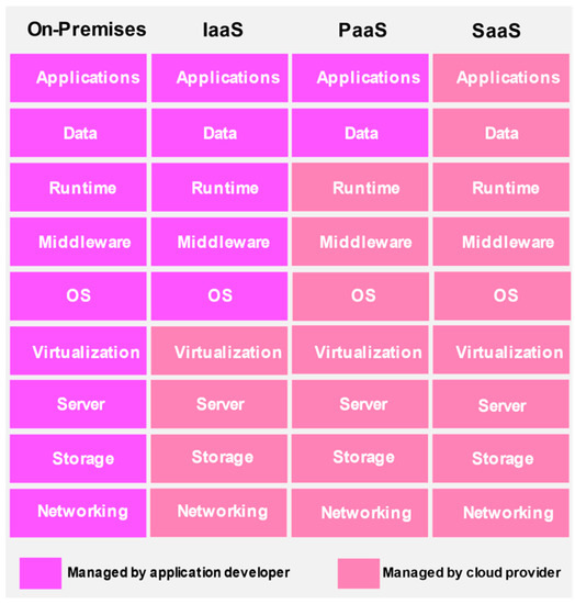 - Infrastructure as a service (IaaS)—The customer is furnished with essential computing resources vital to processing, storing, and networking. The user exercises control upon storage, applications, and operating systems, but not cloud infrastructure. The cloud service models and deployment models are depicted in Figure 4.