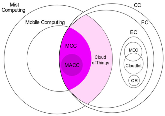 NIST states that the cloud computing alliance with IoT devices and mobile devices facilitates data and CPU-intensive applications suitable for the IoT environment [56]. The concept of Mobile Cloud Computing (MCC) is that it combines cloud computing and mobile applications with sophisticated computing modules processed on the cloud [57]. It enables data processing and storage away from mobile devices, benefitting not just smartphones and a wide range of mobile subscribers. Major computational tasks are moved to the cloud with MCC, improving mobile devices’ battery life [2]. With MCC being grounded on the notion of mobile offloading, mobile devices entrust storage as well as processing to remote units to achieve workload mitigation and optimization in terms of energy, cost, and longevity [45].