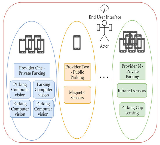 Multiple parking providers might offer smart parking solutions using different technologies in a particular geographical area. Most implementations are centralized. Each service provider has its infrastructure, uses its own application interface model, and a custom user interface in a web page or mobile application. At the city level, the end-user can hope to receive partial information by using multiple interfaces. Citizens want to have meaningful information at their fingertips (smart devices, smartphones, car’s navigation, etc.) in a unified manner. Urban areas often have a shortage in parking places and optimal allocation problems. Some estimates say that 30 percent of traffic in rush hour is due to people looking for a vacant spot [1].