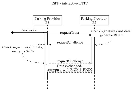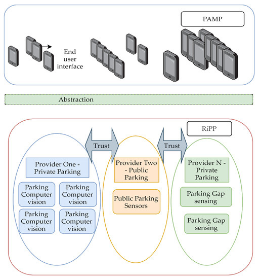 In practical terms, as a possible case, think of a PP from Tokyo (assume P2) that created a mobile app for its users—the app is in Japanese. Bucharest is a popular destination for its users, so a trustworthy PP (assume P1) is found, an agreement is signed, and RiPP is implemented with the trust depth of two. Now, all the users of P2, P2′, and P3 can use their own apps to consume resources from P1 and P1′. The trusted parking providers from Bucharest receive more customers, the end-users are happy to find parking spots in the same app they used in Tokyo, and the city will have fewer drivers cruising around for a free spot.