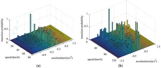 The Markov process [29] proposed by Andrey Markov is a class of random processes. Within a certain period of time, the vehicle speed conforms to the Markov property. Regarding the speed and acceleration as coordinate axes, the state transition probability matrix of vehicle speed can be defined as