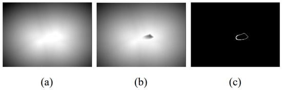 The idea of distance transformation has been widely used in many fields, including computer vision [], image analysis [], pattern recognition [], and so on. The distance transformation algorithm can be used for shape matching and interpolation, skeleton extraction, separation of glued objects, target refinement, etc. Distance transformation is generally used to transform binary images []. In the image space, the pixels in a binary image can be divided into background pixels and target pixels. Take the case where the target pixel is 1 as an example: the pixel value of the target area is equal to 1 and the pixel value of the background area is equal to 0. The distance image generated by the distance transformation is a grayscale image rather than a binary image. The gray value represented by each pixel in this gray image is the distance from that pixel to the nearest background pixel.