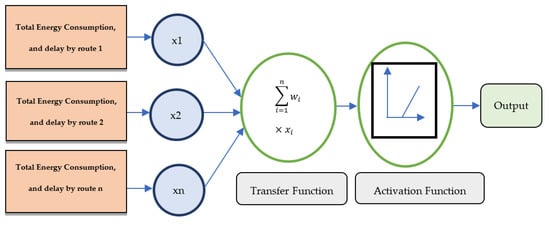 The process involves two attributes, namely energy consumption and delay, that are combined to create a single weight. This weight is then passed to one input node as illustrated in Figure 8.
