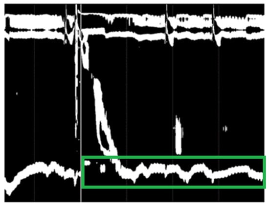 The raw image (the 60 s image) contains more information than necessary for training an artificial neural network, which is considered as noise. As mentioned above, while creating the dataset, we made sure that the marking for the wet swallow was close to the middle of the image. To remove the noise from the raw images, we cropped them using the following rule: upper, lower, and right limits were the image borders, and the left border was represented by the white vertical line before each test swallow. Images representing 20–30 s of the recording resulted, which were sufficient to analyze the IRP, as IRP is measured in the first 10 s after the beginning of a wet swallow [].